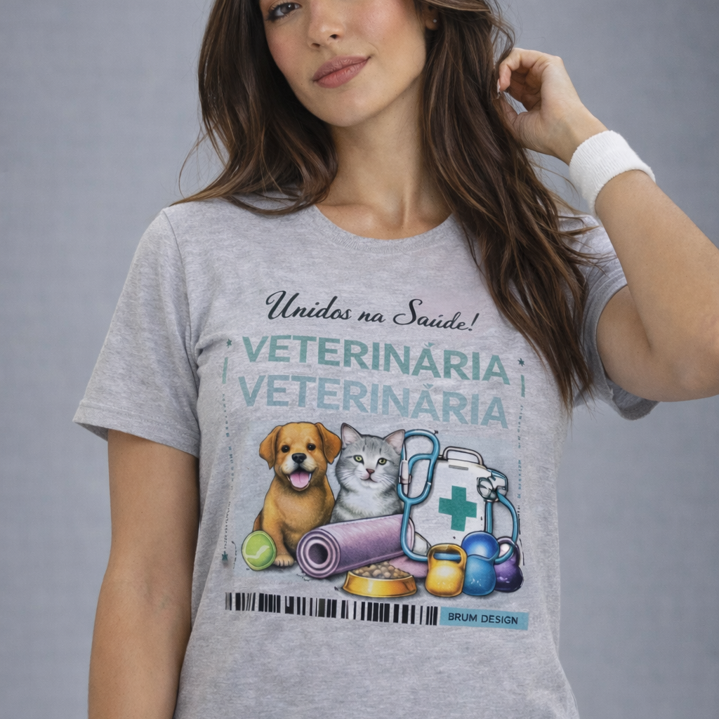 A camiseta Veterinária: Unidos na Saúde celebra a conexão entre profissional, animal e bem-estar, unindo o universo da veterinária ao lifestyle fitness. Uma peça que representa rotina ativa, dedicação e compromisso com a saúde em todas as suas formas.