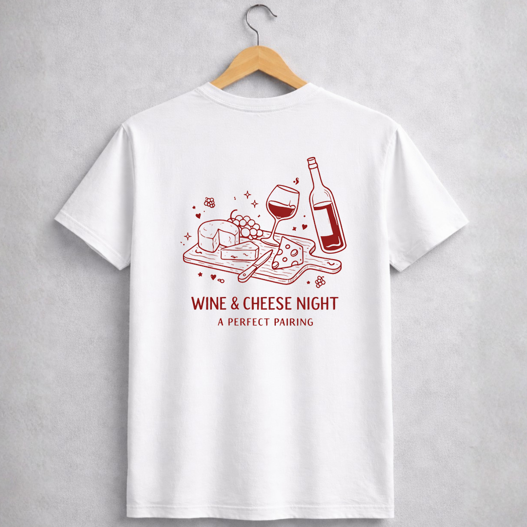 A estampa Wine & Cheese Night celebra uma das duplas mais clássicas de qualquer encontro especial: vinho e queijo. Um convite perfeito para desacelerar, abrir uma boa garrafa e aproveitar conversas que atravessam a noite.